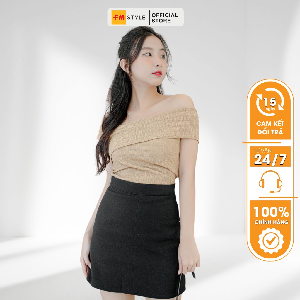 Áo kiểu xốp lệch vai FM Style chất vải thun nhăn co dãn mềm mịn thoải mái phong cách Hàn Quốc 206230046