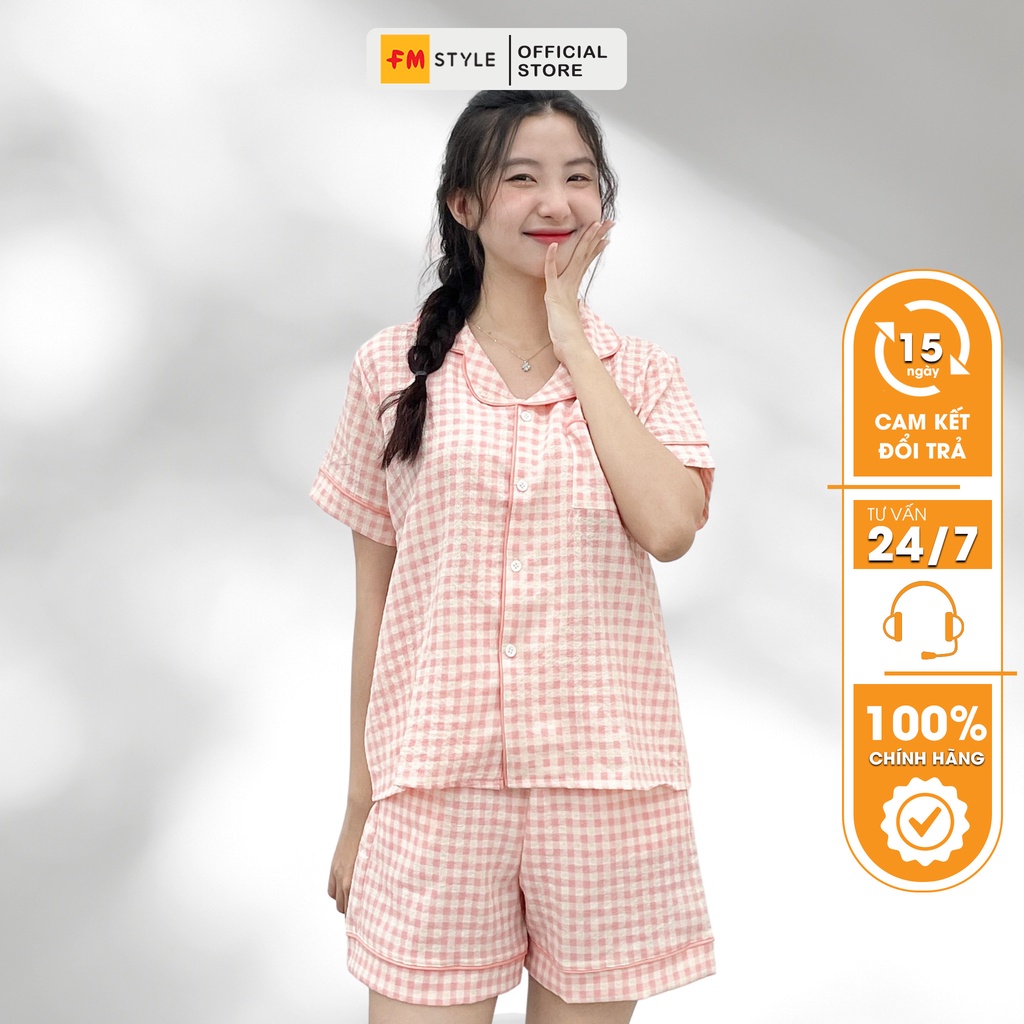 Đồ bộ nữ FM Style pijama lụa mặc nhà ngắn tay quần đùi cổ bèo dễ thương thời trang 207150011