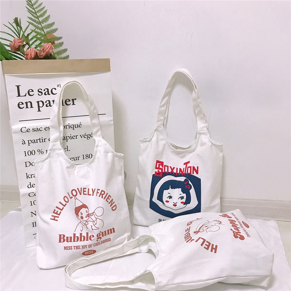 Túi tote vải canvas form bo tròn cô gái Soxinton
